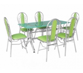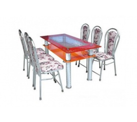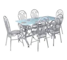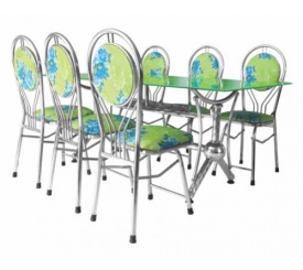 Chân bàn sử dụng ống inox phi 32x0,8mm, mặt bàn dày 0,8mm. Ghế ống phi 25x0,8mm